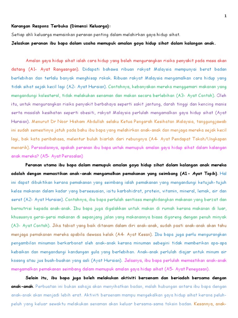 Karangan Respons Terbuka Peranan Ibu Bapa Dalam Memupuk Amalan Gaya Hidup Sihat Dalam Kalangan Anak Pdf Pdf
